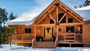 Prepare your cabin for winter by sealing any gaps in chinking and caulking. Cold air entering through cracks makes heating less efficient and can cause moisture problems.